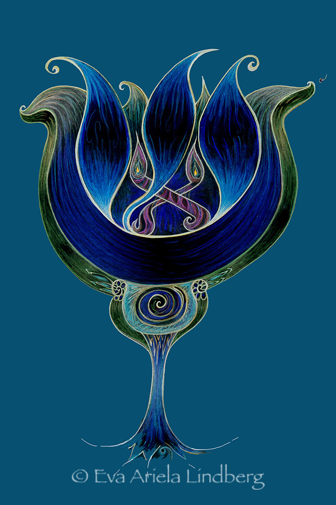 The flower Tulip is one of the rare flowers that hold the space for a perfectly cup shaped form. It’s a good symbolic tool to use in envisioning receiving divine light from above. It’s a Kabbalistic concept, in where we can create a vessel of our own selves in order to be able to receive abundance, G’d’s love and light in us (which is called ‘Kli Kibul’ in Hebrew). When we embrace abundant love & light in our lives, the cup can overflow with bounty, joy and prosperity. The image portrays both the actual cup (also can be likened to the Holy Grail) and the flower Tulip itself.